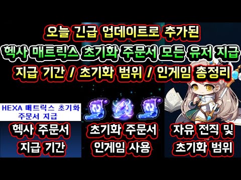 [메이플스토리 맑음] 오늘 긴급 업데이트로 추가된 헥사 매트릭스 초기화 주문서 모든 유저 지급 / 지급 기간 / 초기화 범위 / 자유 전직 관련 / 헥사 주문서 인게임 사용 총정리