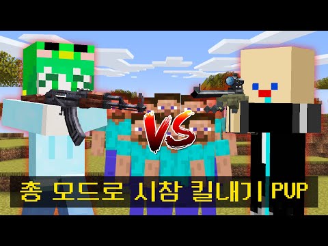 *꼬예유 vs 파이브 vs 100명* 마인크래프트 총 모드로 킬내기 PVP