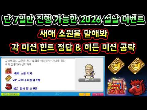 [메이플스토리 맑음] 새해 소원을 말해봐 이벤트 공략 및 히든 미션 하는 방법 정리 (새해 소원을 말해봐 미션 정답 / 새해 소원을 말해봐 히든 미션 공략)