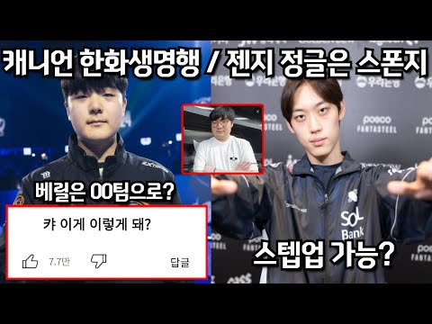 캐니언 한화생명행 / 젠지 정글은 스폰지 / 베릴은 00팀으로..